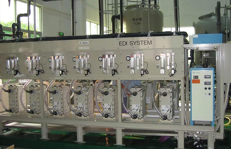 根據用戶提供的要求、技術交流要求、現場場地要求,以及現有工藝的綜合考慮,確定項目的處理工藝,處理工藝一般采用多介質過濾系統+活性炭過濾器+超濾+反滲透系統(一級、二級)+EDI交換系統等膜法處理工藝。多介質過濾系統作為預處理系統,去除多余的雜質及 SS;反滲透系統作為核心脫鹽系統,去除水中大部分離子,用EDI裝置是電去離子凈水技術是一種將電滲析和離子交換相結合的脫鹽新工藝。保證最后的出水水質滿足用戶的最終用水要求。